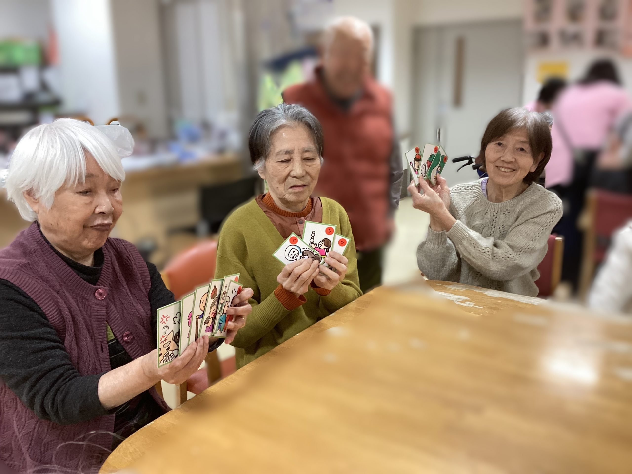 なので今回は新年を実感頂くため懐かしい遊び、かるたと福笑いを行いました🌞