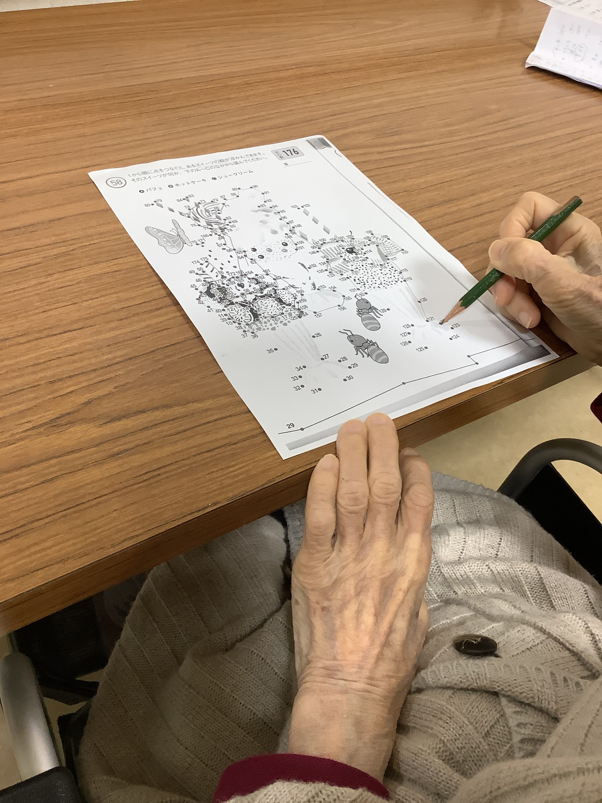 また、鉛筆をしっかり握るので、筋力維持や感覚刺激になり、手指の機能維持につながります。
