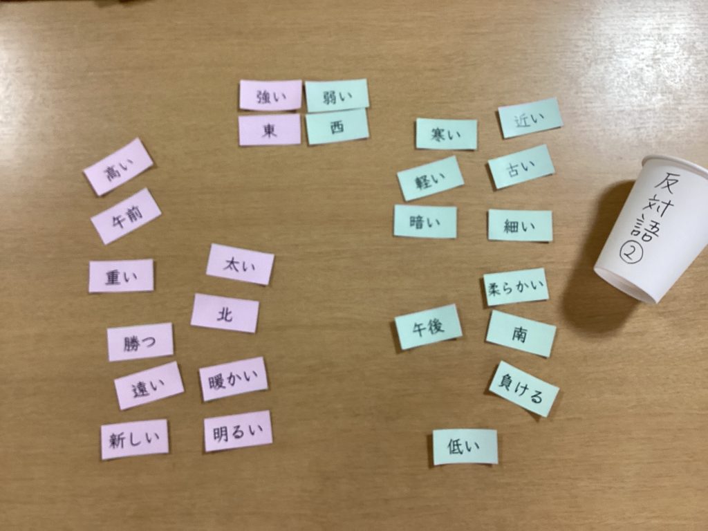 「強い」・「弱い」などの反対語のペアを揃えるカートゲームです‼️