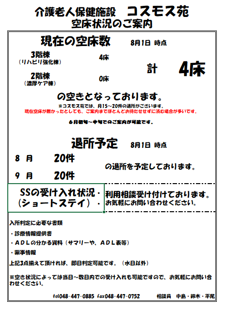 当コスモス苑は、リハビリテーションと認知症への対応を中心に 要介護高齢者の自立度を高め、 在宅復帰、在宅生活支援を進めるとともに、 必要であれば在宅の代替機能を提供することができる施設を目指しています。