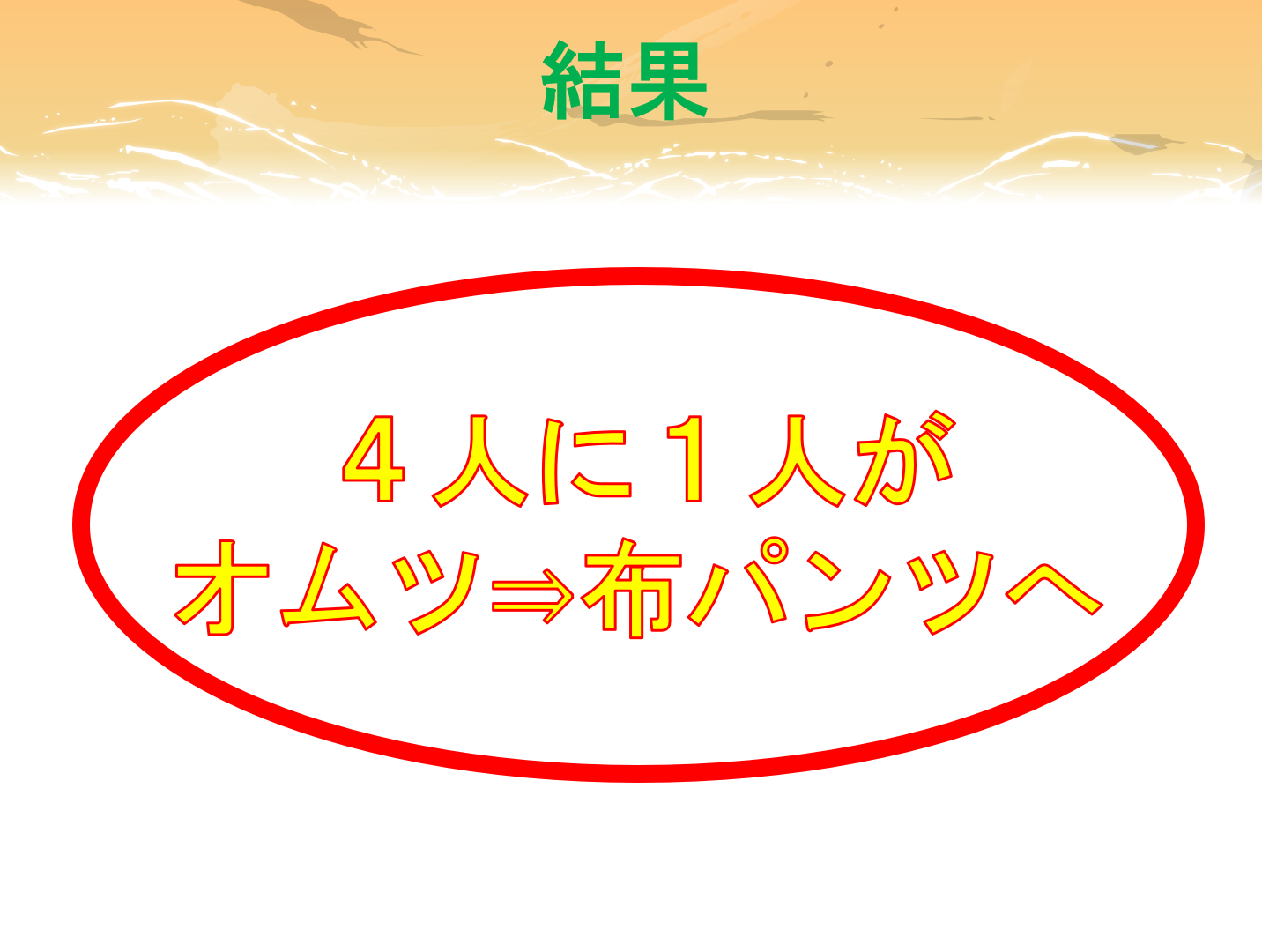 また排泄機能が向上した94名中、布パンツでの生活が可能となった利用者は39名居られました。