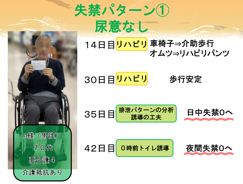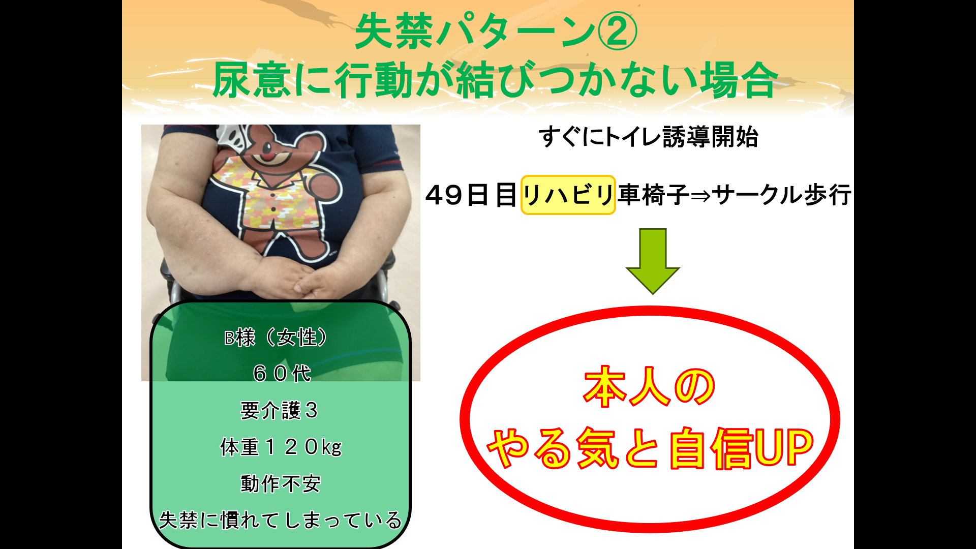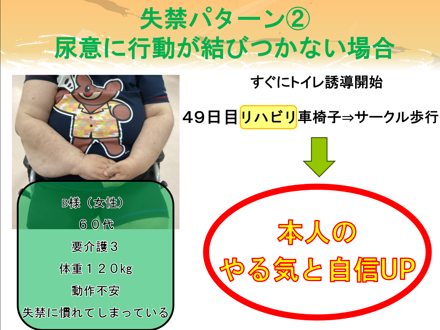 また排泄支援を通し画一的な排泄介助を行うのではなく、個別ケアの重要性を職員が見出し多角的なアプローチへ繋がったと考えられます。