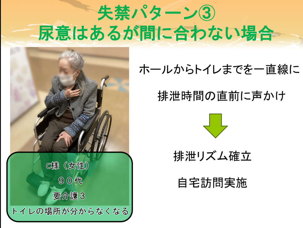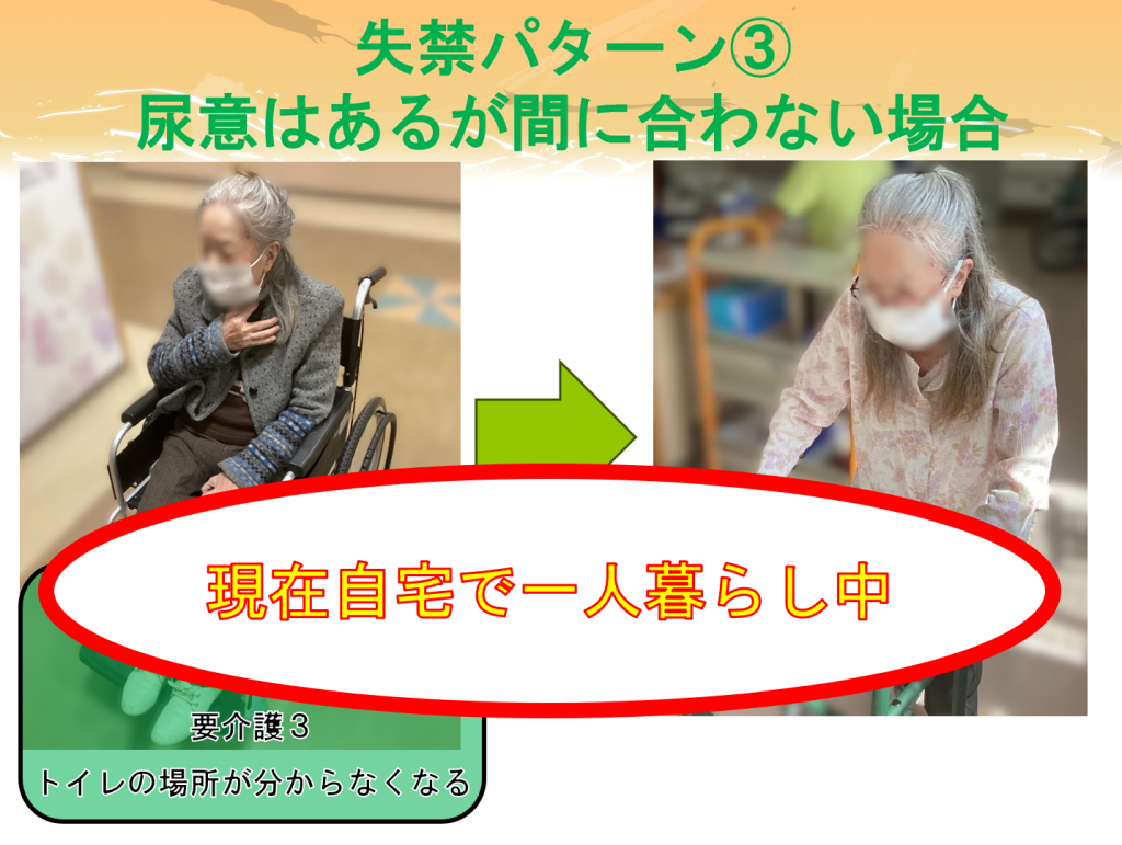 失禁パターン③ 尿意があってもトイレに間に合わない方