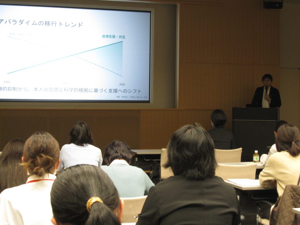 上記の演題にてコスモス苑からも講演をする機会をいただきました。当日は近隣の医療機関、居宅介護事業所、地域包括センター、訪問看護等より18名の専門職の方のご来場がありました。